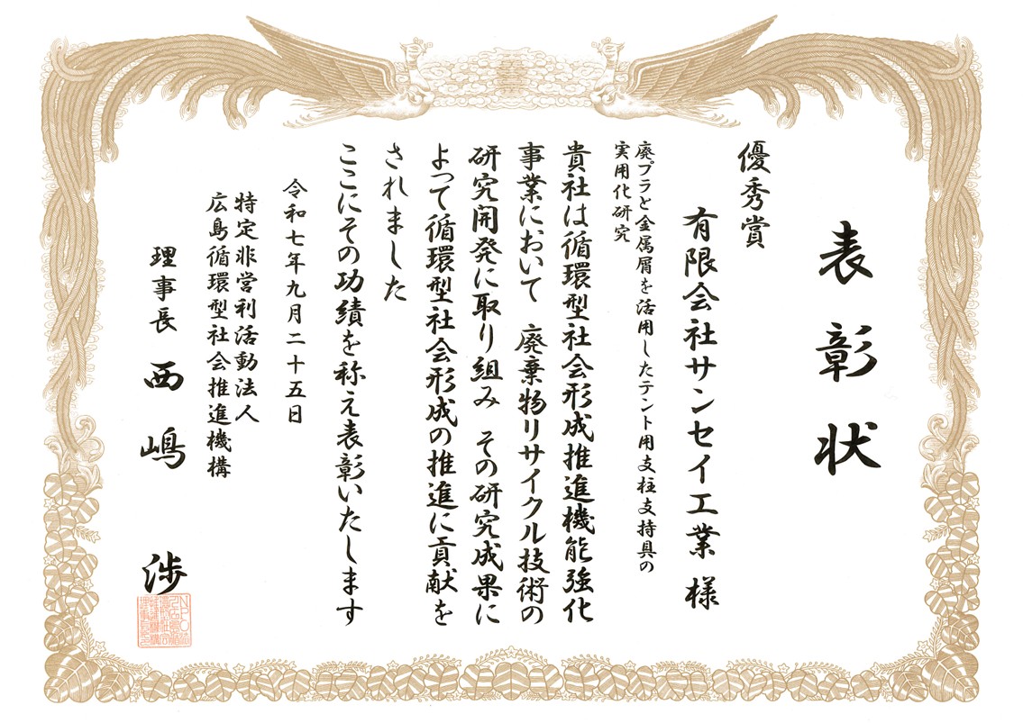 循環型社会の実現に貢献できるよう、ものづくりに励んでまいりたいと存じます。