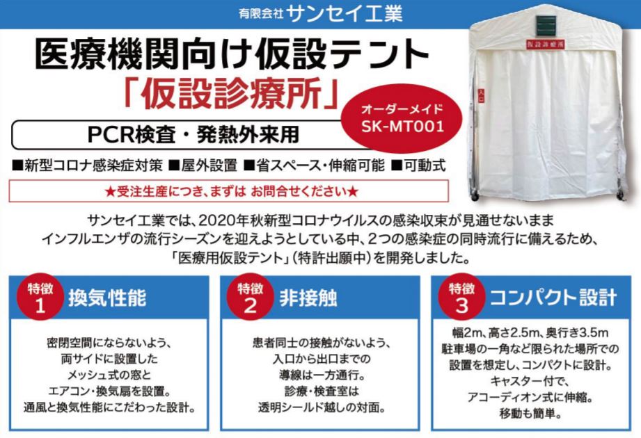 新型コロナウイルス感染症対策として応急的な設置を可能とする「仮設診療所」の受注販売を行っています (2020-11-27)